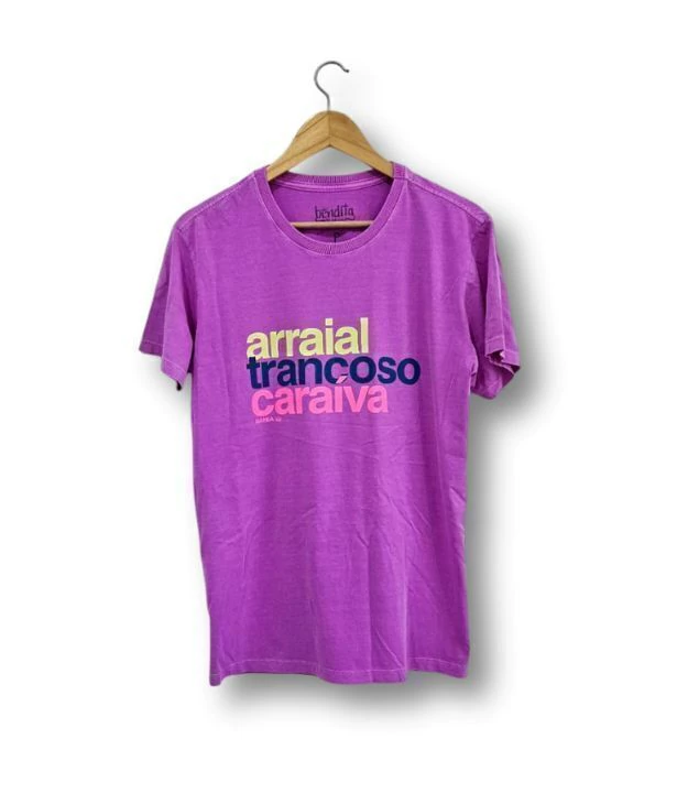 Camiseta Arraial Trancoso Caraíva - Bahia (Peça Original) - Roxinha (lilás) Neon